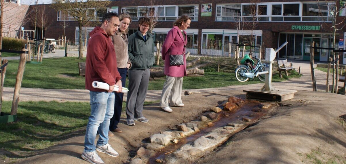 Om te ervaren wat een groen schoolplein kan betekenen, brachten de deelnemers een bezoek aan het vernieuwde plein van de Cypressenhof in Middelburg. Een inspirerend voorbeeld waar spel, ontdekking en natuur samenkomen.